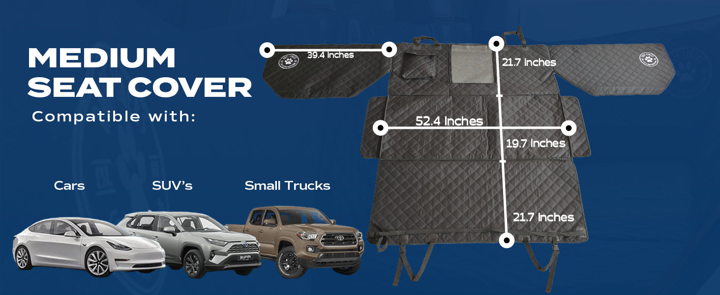 - TAILOR-MADE FOR CARS, MID-SIZE SUV, AND MID-SIZE TRUCKS: This dog seat cover for back seat with door protection is made to fit cars, crossovers, mid-size SUVs, and mid-size trucks. The patent pending back seat pet cover for dogs completely covers the backseat area and makes it convenient to take you dog on more adventures.
