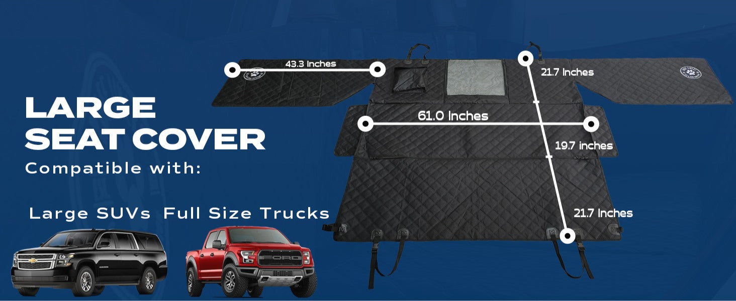 - TAILOR-MADE FOR FULL-SIZE TRUCKS: Our truck back seat cover for dogs with door protection are meticulously tailored to fit all full-size extended cab trucks measuring 60.2 inches across. This dog seat covers for trucks is a soft cover that covers the tops of the seats and provides full protection for the backseats and door panels.